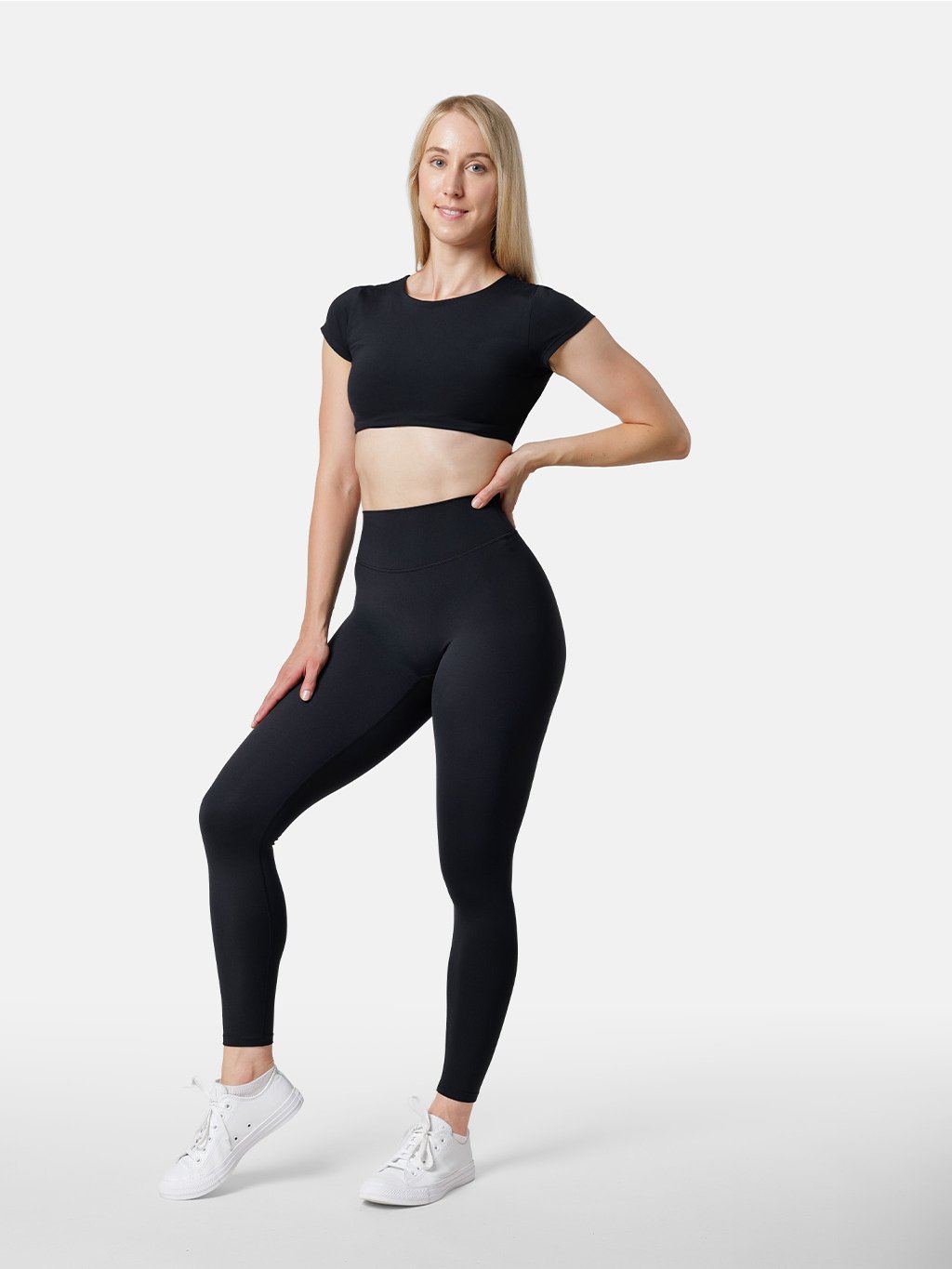 Legíny tak hebké a prodyšné, že zapomenete, že je vůbec máte. Speciální šev ve tvaru V přirozeně tvaruje zadeček, luxusní materiál působí jako jemné pohlazení na kůži a pohodlí si užijete i při celodenním nošení.