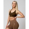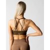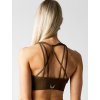 Hnědá sportovní podprsenka s rafinovaným propletením ramínek na zádech a hlubokým výstřihem. Dokonale hebký materiál vás nadchne.